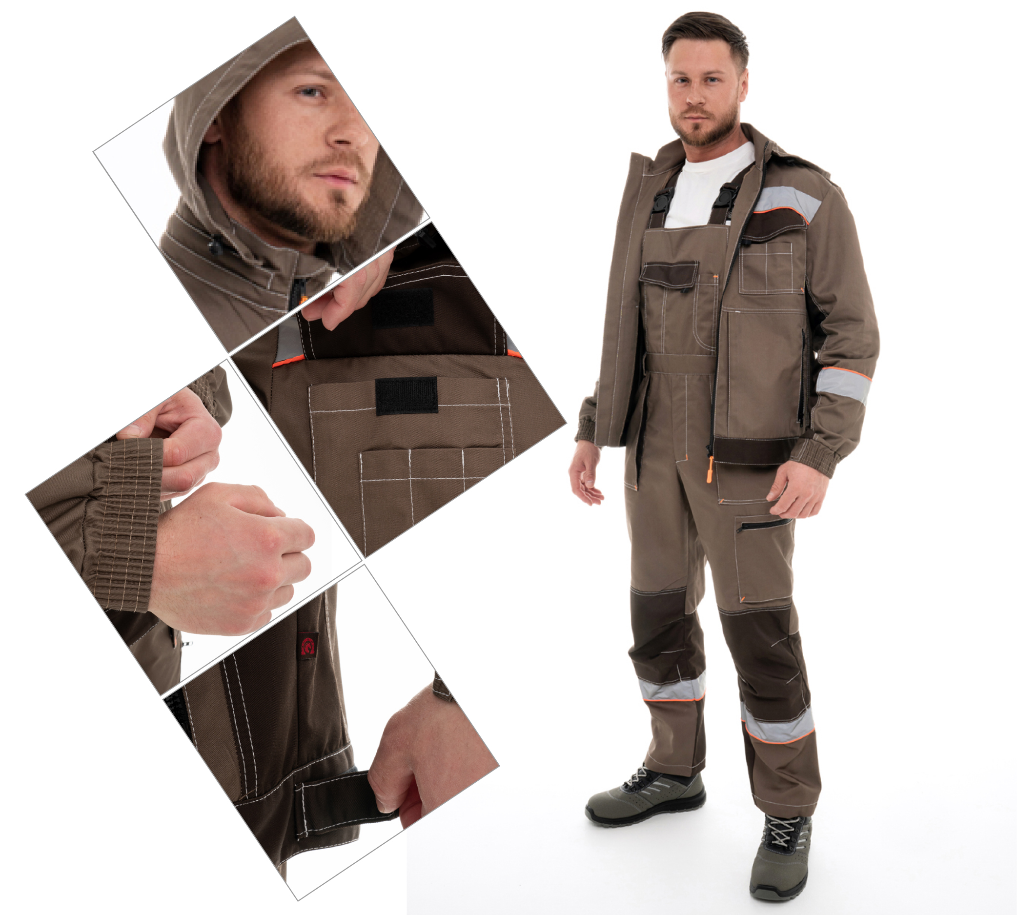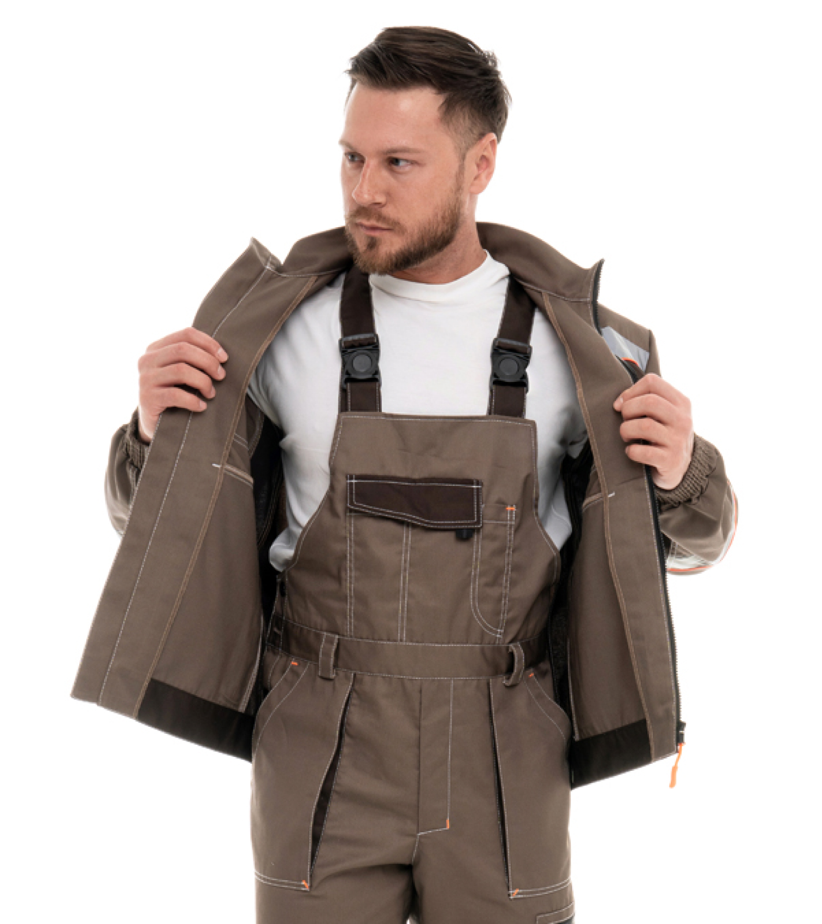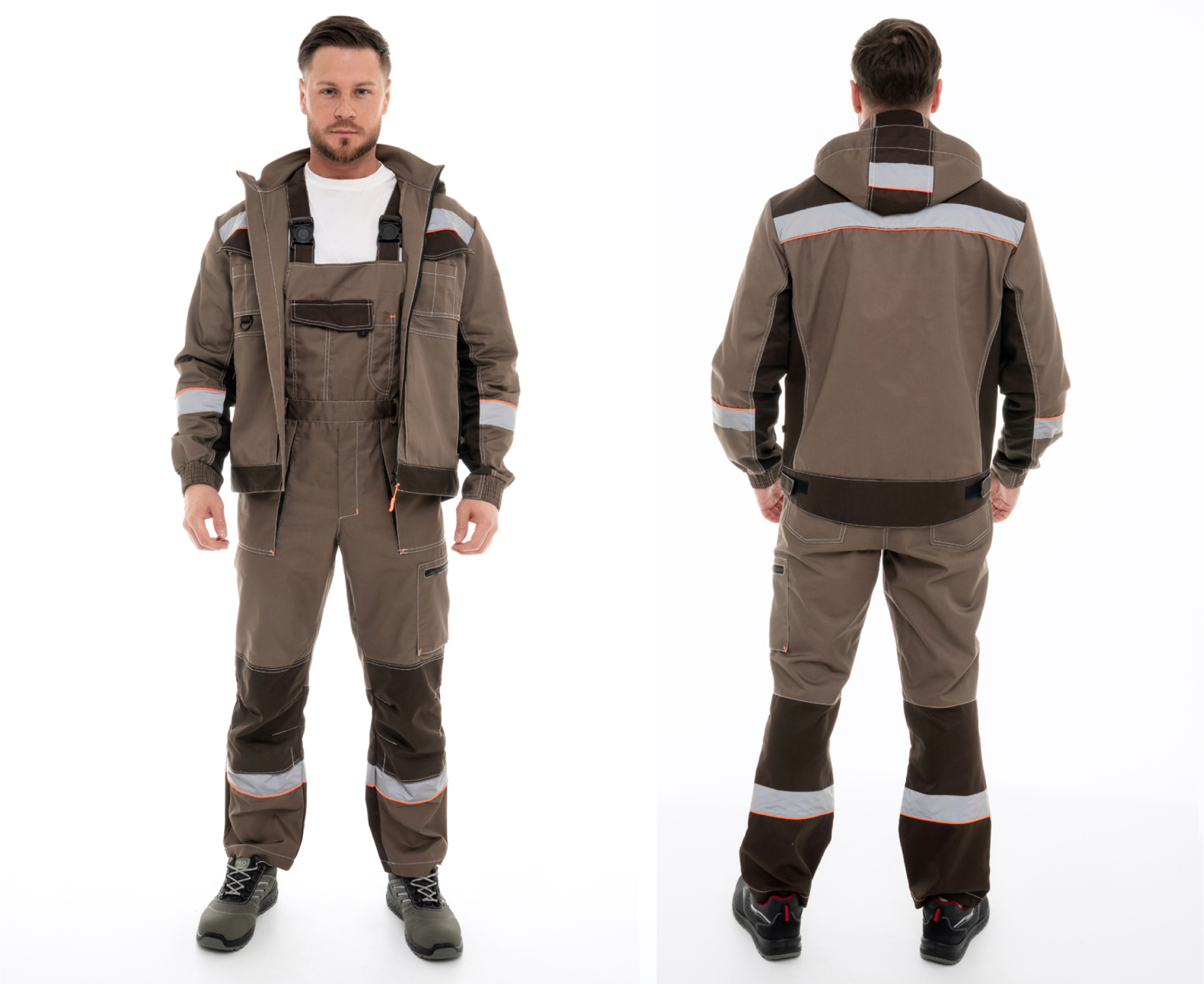 Костюм мужской БЕРГЕН-2″ куртка, полукомбинезон цв. бежевый, т. коричневый